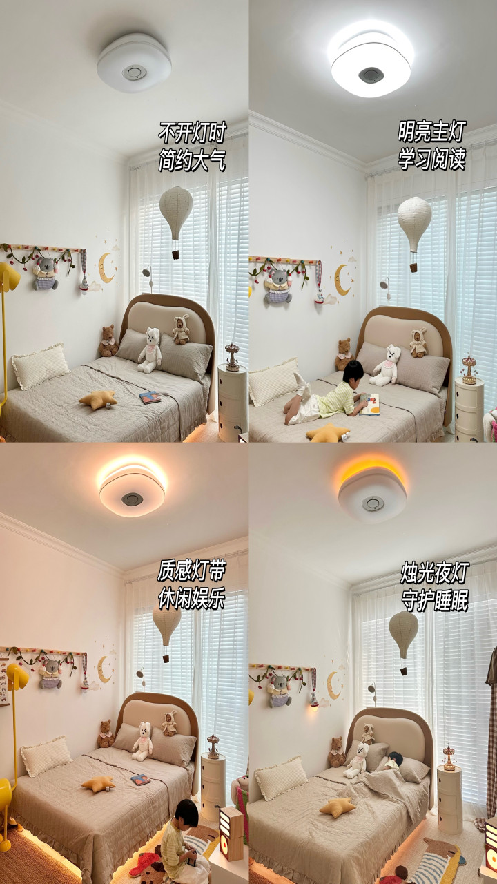 Aora 所提出的“大主灯”系统便是一种值得关注的尝试:它不是灯具的简单组合,而是一种以空间光感为核心的照明方式,在一个装置中集成了主光 + 氛围光 + 夜灯光三重柔光结构,精准控制光线的“调性”,从而为客厅、书房、卧室等空间构建更均衡、低干扰的家庭光环境。
